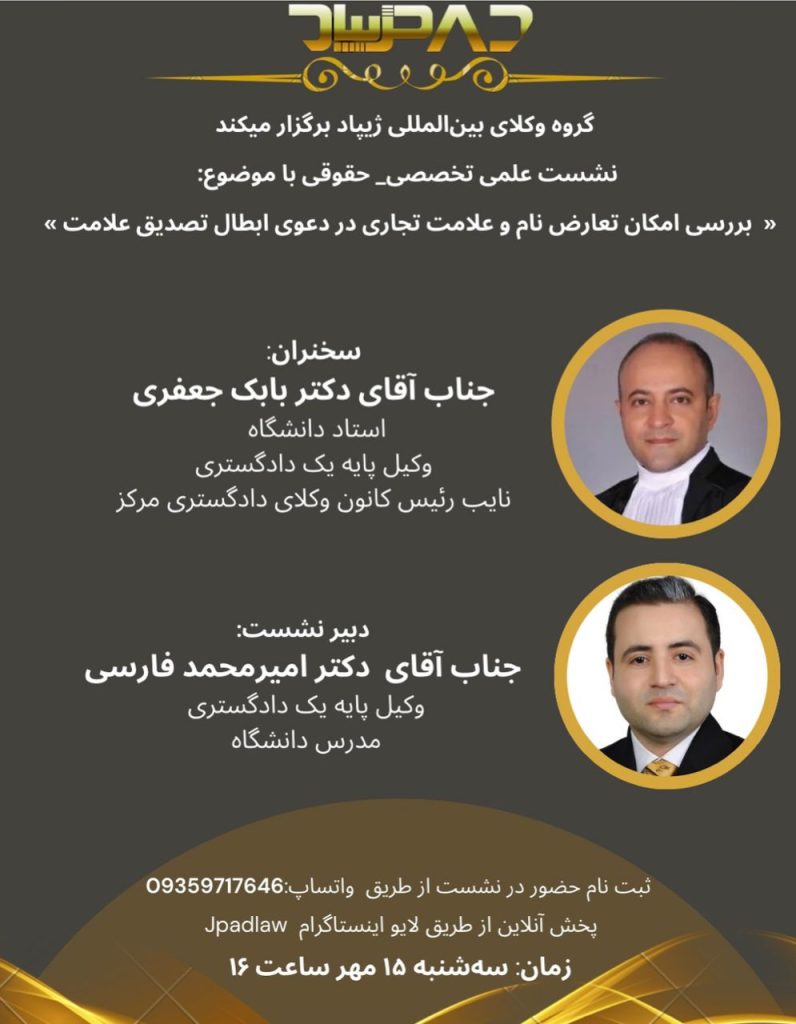 نشست علمی تخصصی حقوقی با موضوع: « بررسی امکان تعارض نام و علامت تجاری در دعوی ابطال تصدیق علامت »