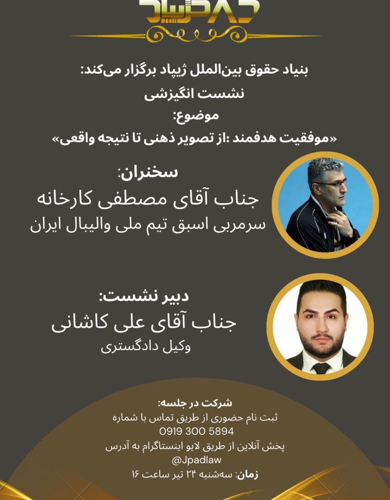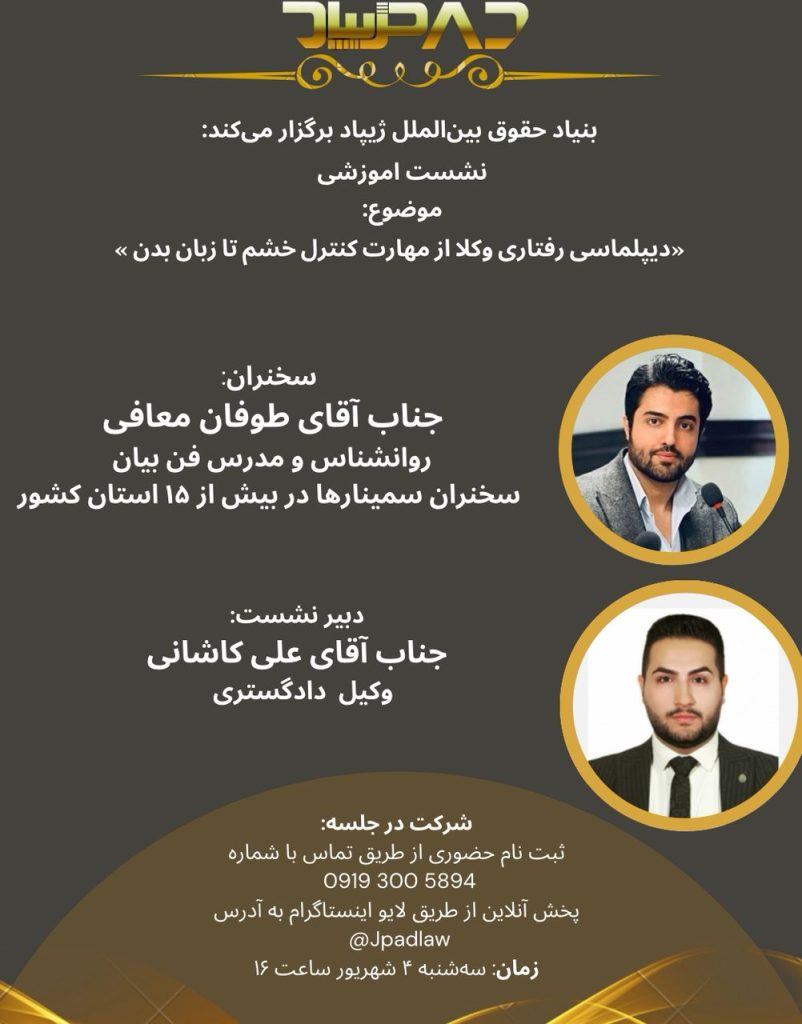 نشست اموزشی موضوع: «دیپلماسی رفتاری وکلا از مهارت کنترل خشم تا زبان بدن»