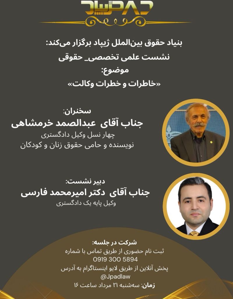نشست علمی تخصصی حقوقی موضوع: «خاطرات و خطرات وکالت»