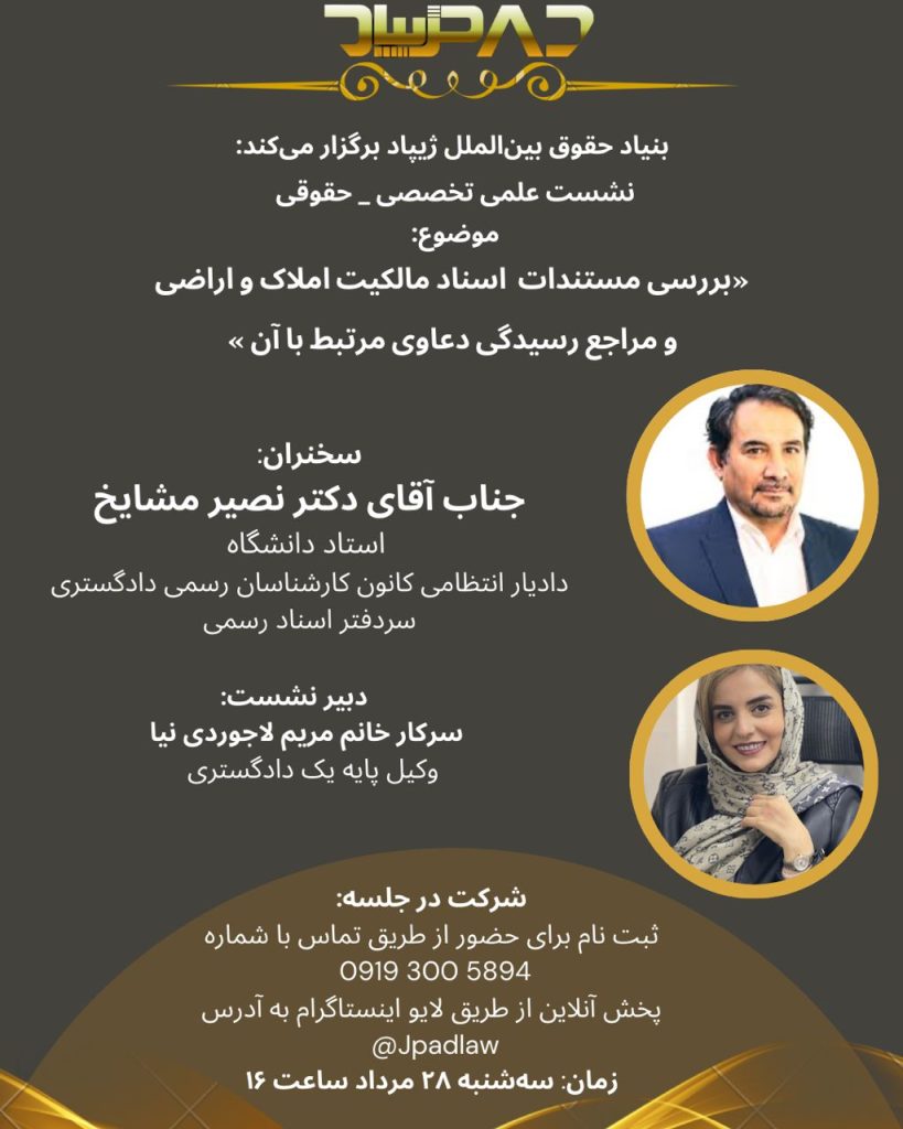نشست علمی تخصصی حقوقی با موضوع: «بررسی مستندات اسناد مالکیت املاک و اراضی و مراجع رسیدگی دعاوی مرتبط با آن»