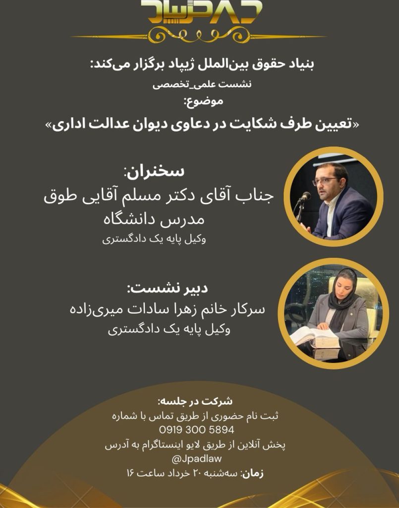 نشست علمی تخصصی موضوع: «تعیین طرف شکایت در دعاوی دیوان عدالت اداری»