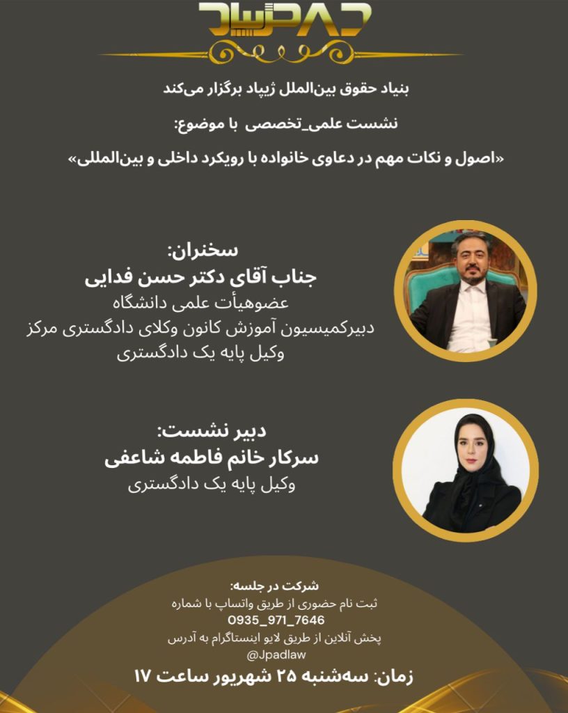 نشست علمی تخصصی با موضوع: «اصول و نکات مهم در دعاوی خانواده با رویکرد داخلی و بین المللی»