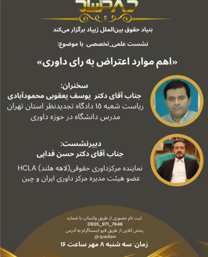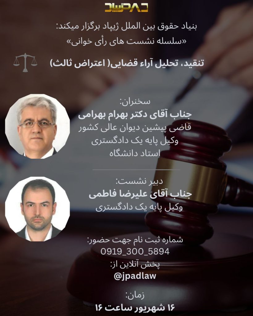 بنیاد حقوق بین الملل ژیپاد برگزار میکند: «سلسله نشست های رأی خوانی» تنقید، تحلیل آراء قضایی( اعتراض ثالث)